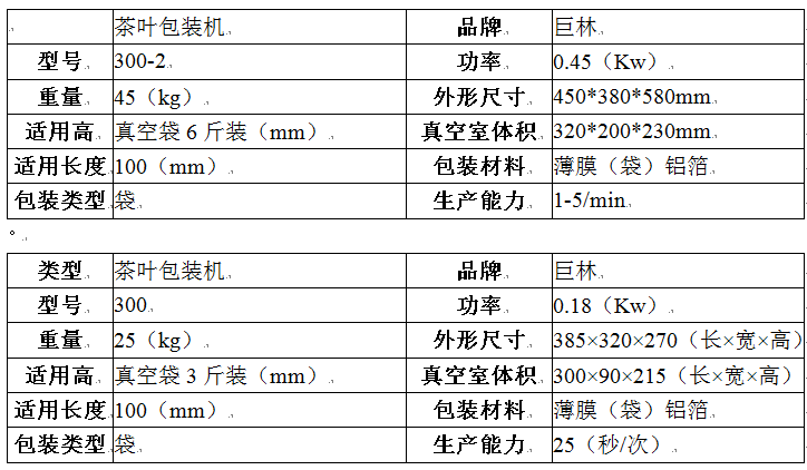 300型3斤茶叶真空包装机上市使用.该机做到能真空、封口等一体化全自动操作,具有包装速度快、体积小、低噪音、低能耗,操作简单等特点。解决了茶叶小包装真空的一系列烦琐手工操作问题、节省人力物力。